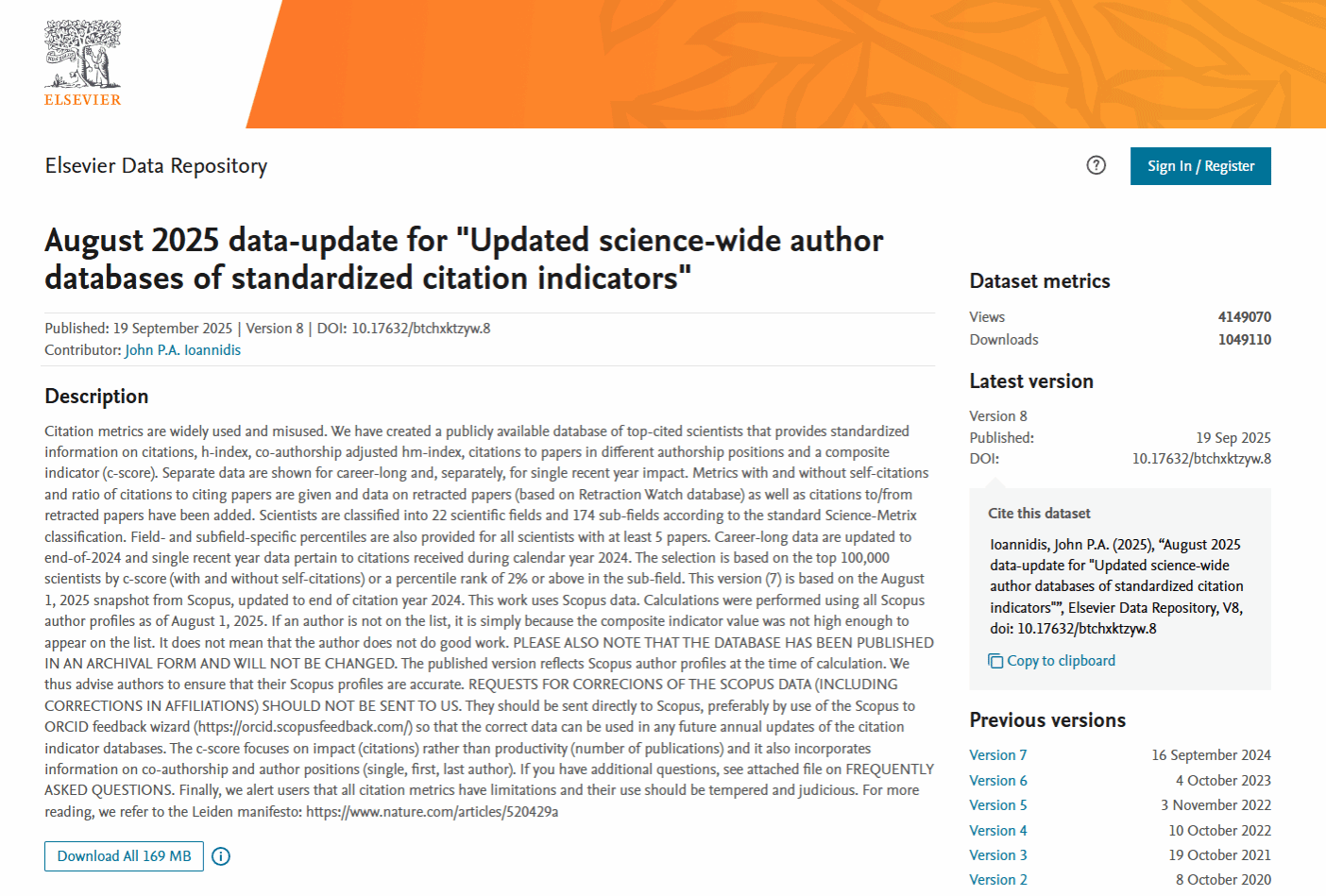 查看详情美国斯坦福大学John P.A. Ioannidis教授团队与爱思唯尔(Elsevier)联合发布第八版《全球前2%顶尖科学家榜单》(World’s Top 2% Scientists)。国产探花 7位优秀学者凭借卓越的科研成就荣耀登榜,其中文龙教授入选"终身科学影响力排行榜";宁伏龙、丁华锋、文龙、葛明…