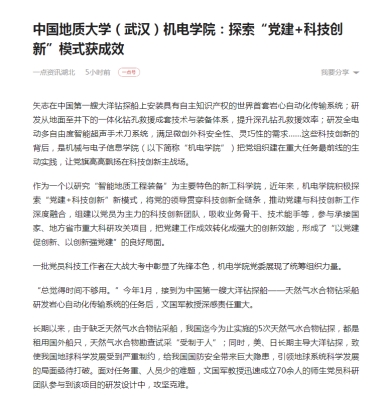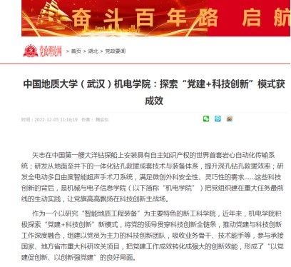 校内外媒体刊载《国产探花 探索 “党建+科技创新”模式获成效》