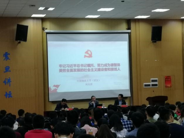 第二部分,努力成为社会主义建设者和接班人。何书记用“内化于心,外化于形”八个字告诉同学们怎样去学习,怎样去践行习总书记讲话的精神,并带领同学们学习习总书记对于如何培养社会主义建设者和接班人的讲话,提到要在坚定理想信念上下功夫,建议同学们认真阅读经典著作,深入学习马列主义,毛泽东思想,邓小平理论,”三个代表”重要思想,科学发展观,和习近平新时代中国特色社会主义思想,理论联系实际,深入贯彻;要在厚植爱国主义上下功夫,加强爱国主义理论教育,实践教育,增强民族自信心;要在加强品德修养上下功夫,注重道德实践,明辨是非,从中华民族优秀传统文化中汲取营养,争做道德榜样;通过殷鸿福院士、李德威教授的感人事迹,激励同学们要在增长知识见识上下功夫,加强时间管理,练就过硬本领,要“既多读有字之书,也多读无字之书;要在培养奋斗精神上下功夫,主动深入基层,积极锤炼品格,在实践中培养科学的思维方法和思维能力,发扬奋斗精神;要在增强综合素质上下功夫,树立德智体美劳全面发展理念,加强体育锻炼,增强自身体质,培养审美情趣,提高审美素养,崇尚劳动,自觉参加劳动锻炼。