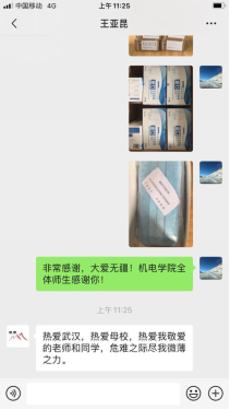 (武汉)机电学院原“勘探机械”专业(现“机械设计制造及其自动化”专业)072901班学生,现是成都善嘉医药生物医药有限公司的股东,该公司于2011年07月29日成立,经营范围包括医疗器械、生物制品、消毒制品、保健电器的研发及销售等。自发生新型冠状病毒感染的肺炎疫情以来,校友王亚昆十分关注武汉和母校的疫情防控工作,他表示虽然自己已毕业多年,仍然心系武汉和母校、心系老师和同学们,愿竭力在这个特殊时期贡献自己的微薄力量。