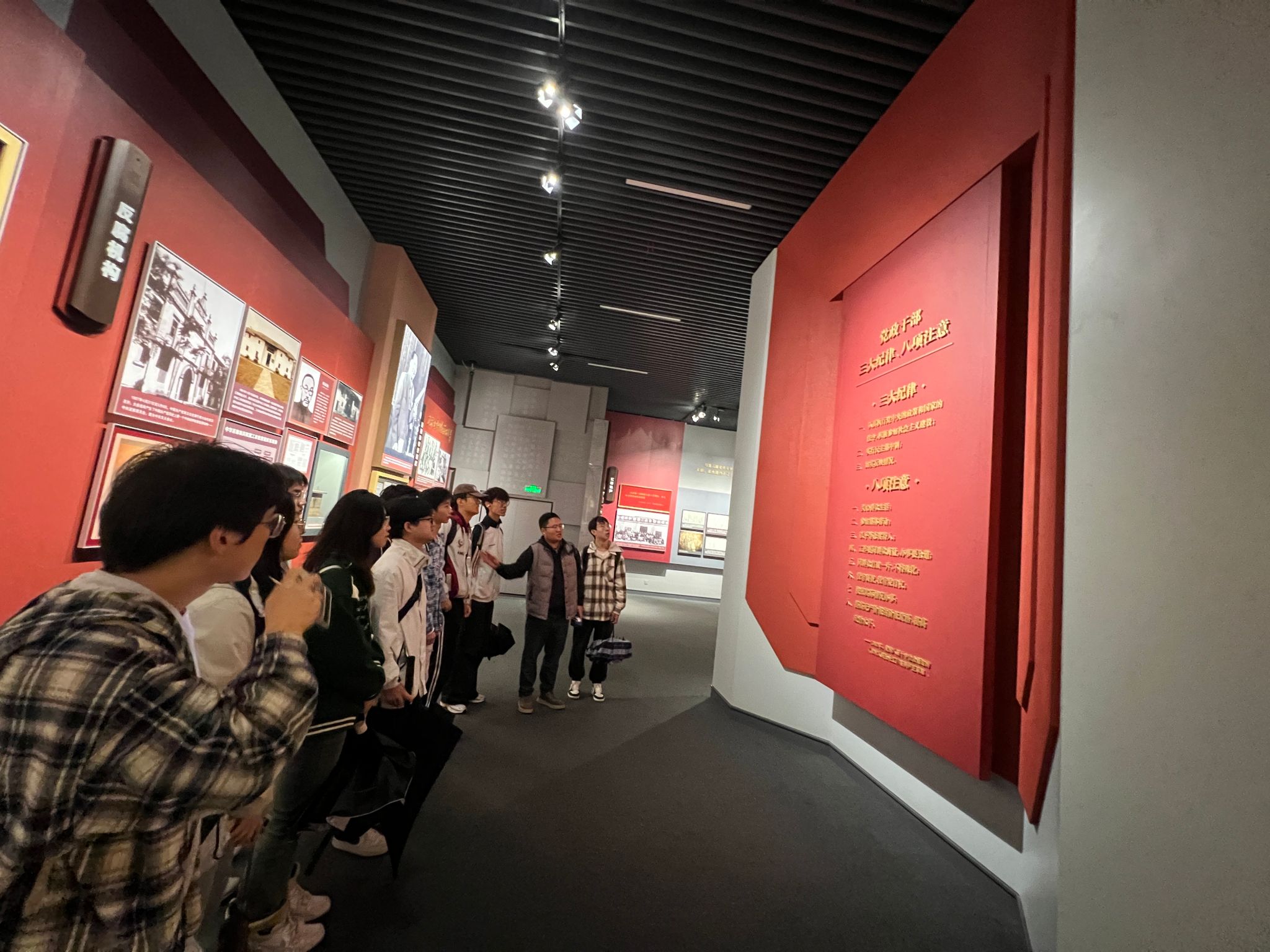 11月9日上午,师生党员走进毛泽东同志故居,陈旧的木桌、昏黄的油灯勾勒出革命先辈的奋斗轨迹。纪念馆内,珍贵史料串联起民族独立与人民解放的壮阔历程。在毛泽东铜像广场,全体党员列队肃立、三鞠躬致敬,面向党旗重温入党誓词,铮铮誓言彰显初心使命。