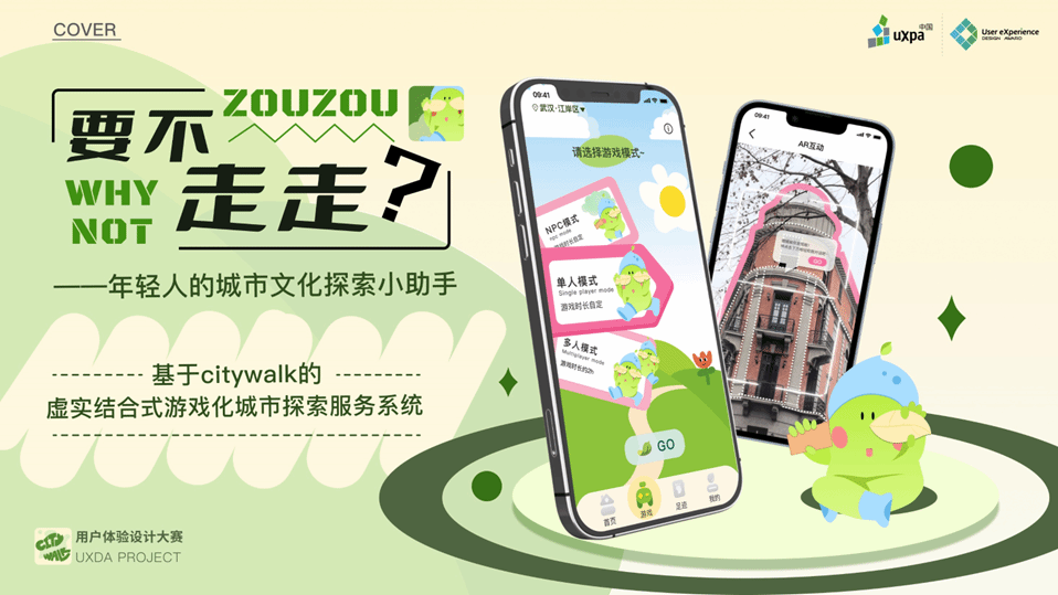 创作理念:近年来,citywalk趋势大火,为了让用户在walk过程中得到更良好的体验,联系重构无界关键词,团队打造了一个以弱连接切入人与社会关系,帮助人们对身边城市进行深层探索,重塑人-城关系的服务系统。通过游戏化的服务模式,结合AR与AI的技术手段,加以店铺合作的留言打卡装置与用户产生实体连接,打造线上线下相结合服务体系,人们可以共同打造关于城市的记忆世界,在这个只属于自己的短逃离瞬间感受城市的无限魅力