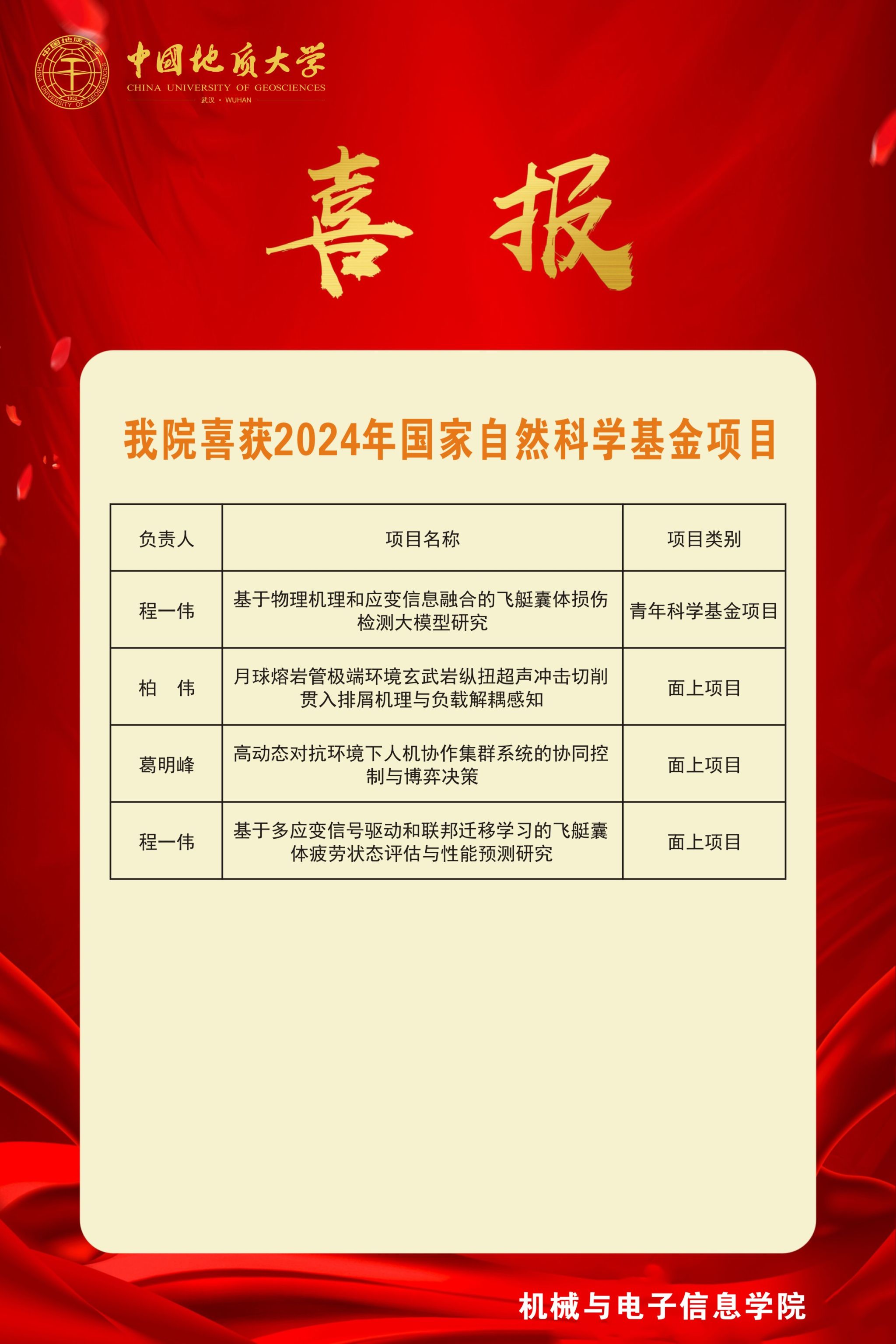 喜报-国产探花 2024年获得4项国家自然科学基金