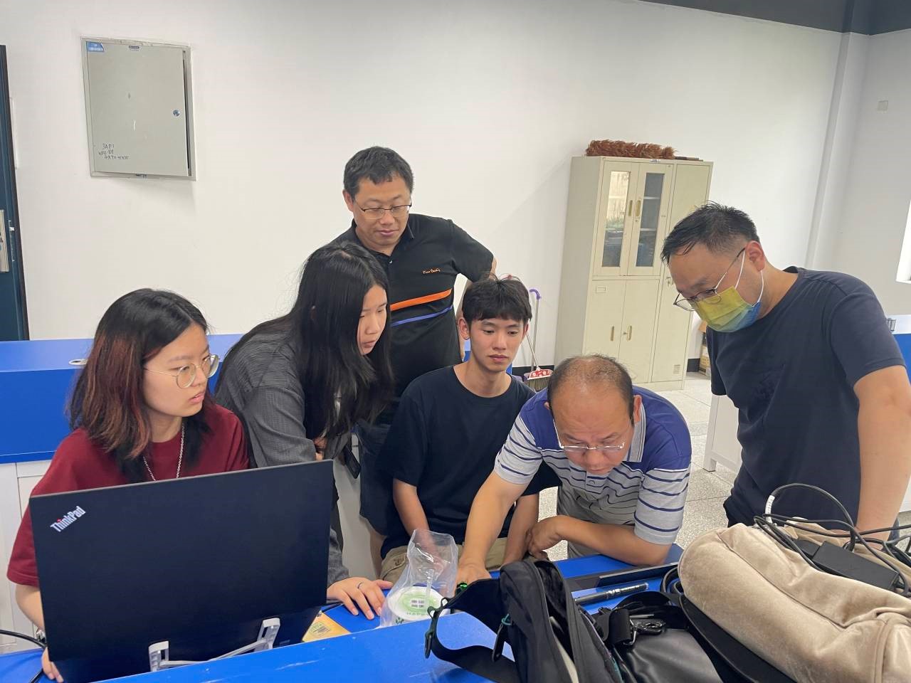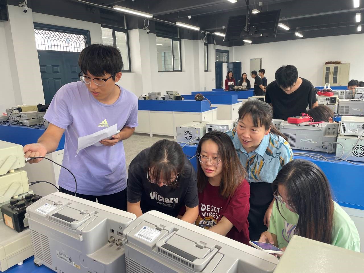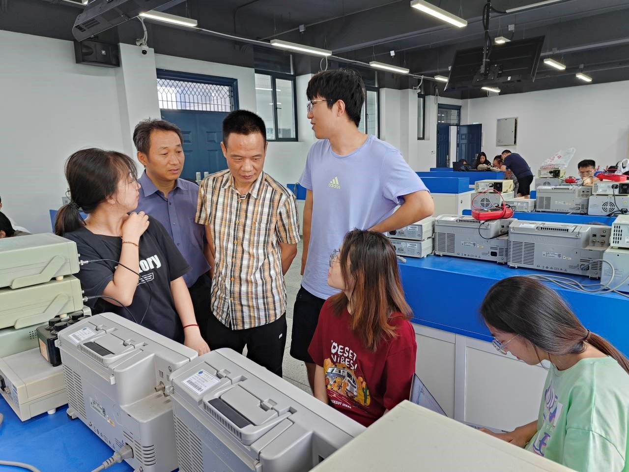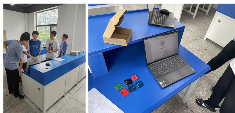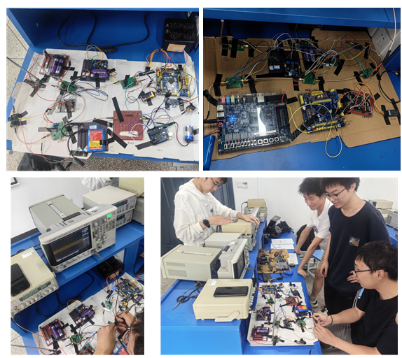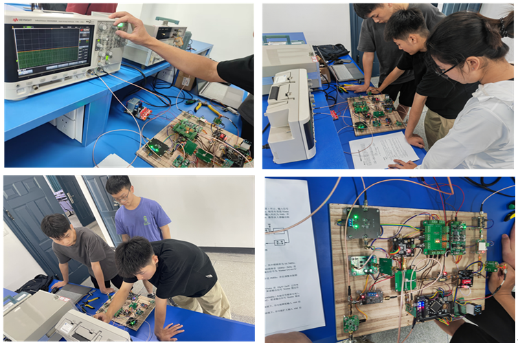 通信系教师郝国成、王巍、周峰、钟梁、吴让仲、李杏梅参加比赛验收。