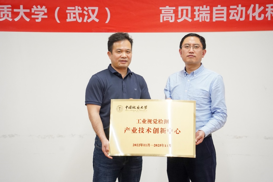 与东莞市达瑞电子股份有限公司及旗下全资子公司东莞市高贝瑞自动化科技有限公司合作共建“工业视觉检测产业技术创新中心”,同时,双方签署了针对工业视觉检测应用方面的技术攻关战略合作协议,本次交流旨在对双方前期合作情况进行交流总结,促进校企全方位合作,加快推进工业视觉检测技术的落地应用,同时举行产业创新中心授牌仪式。