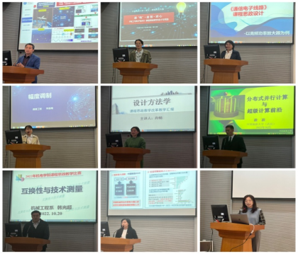 于2022年10月20日下午在教二楼301举办了全院“课程思政”教学竞赛。电子信息、机械工程、工业设计、通信工程各选派2名教师,工程教学实习中心选派1名教师参加了此次教学竞赛。大赛邀请了本科生院副院长孟霞、校级督导吴国平、院级督导叶敦范、校青年教师讲课比赛一等奖获得者杜育,学院党委书记瞿祥华全程参与指导。全院教师进行了现场观摩交流。