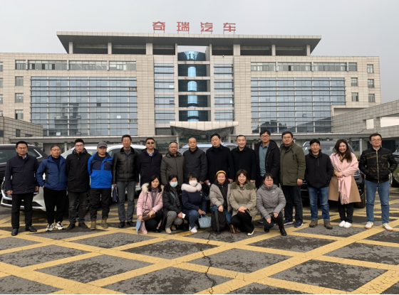 在奇瑞公司会议室与领导们进行座谈交流,探讨校企人才联合培养