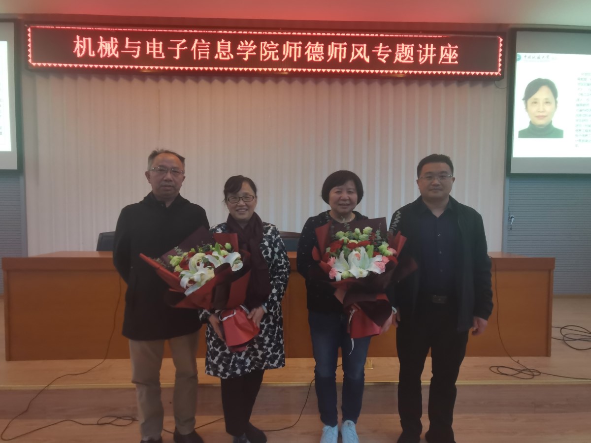 第三个部分孟教授结合自己的亲身体验讲述了武汉抗疫的故事。在疫情期间,孟教授多次看着新闻报道动容落泪,他深刻感受到了国家力量。他认为我国抗疫成功还有一条重要经验就是中央派指导组进驻武汉,协调全国物资调配,与武汉人民感同身受。孟大维教授呼吁全体教师,志存高远,脚踏实地,承担起教师的使命与担当,把个人奋斗与国家发展紧密联系起来,时刻做好准备等待祖国的召唤,为中华之崛起而努力奋斗!最后,李波副院长代表全院教师向孟教授献花致敬并合影留念。