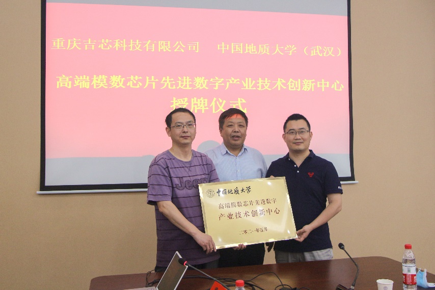 (武汉)联合创立的高端模数芯片先进数字产业技术创新中心授牌仪式圆满举行。中国电科首席专家、模拟集成电路国家级重点实验室执行副主任李儒章,重庆吉芯科技有限公司党总支书记陈光炳,副总经理、产业中心企业方主任付东兵,我校副校长赖旭龙,国产探花