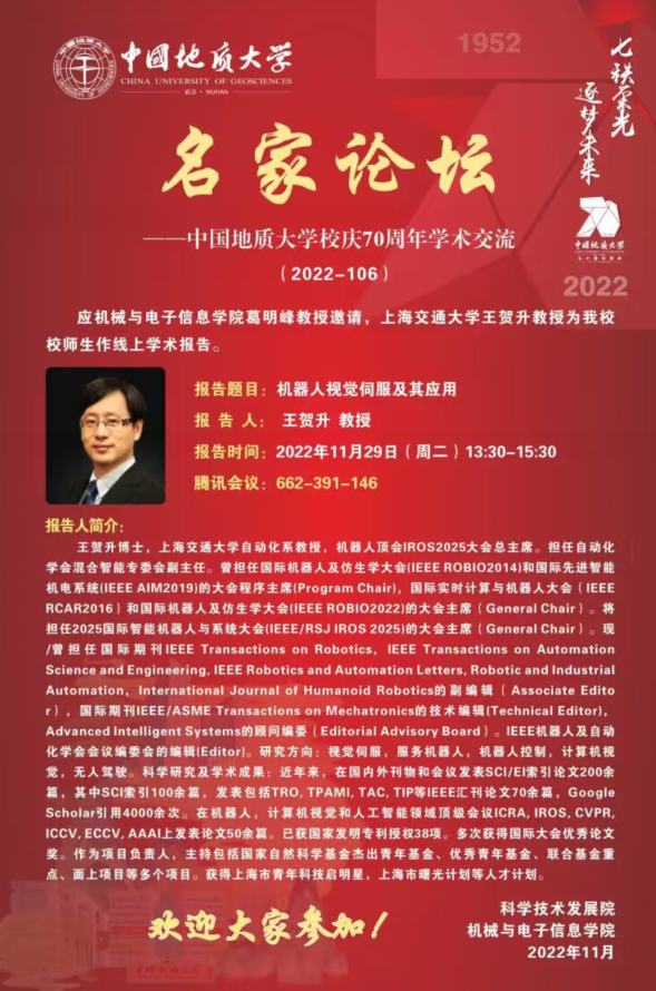 【11月29日】校庆系列学术活动---名家论坛(2022-106):上海交通大学王贺升教授