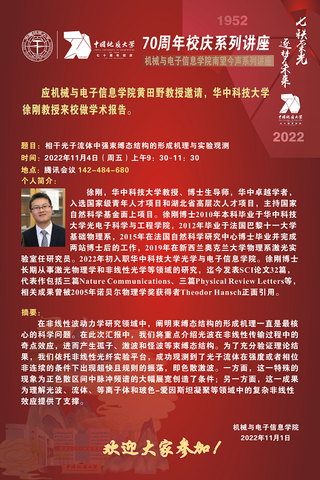 机电讲坛(2022-19):华中科技大学徐刚教授来校做学术报告