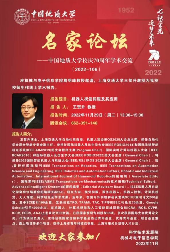 【11月29日】校庆系列学术活动---名家论坛(2022-106):上海交通大学王贺升教授