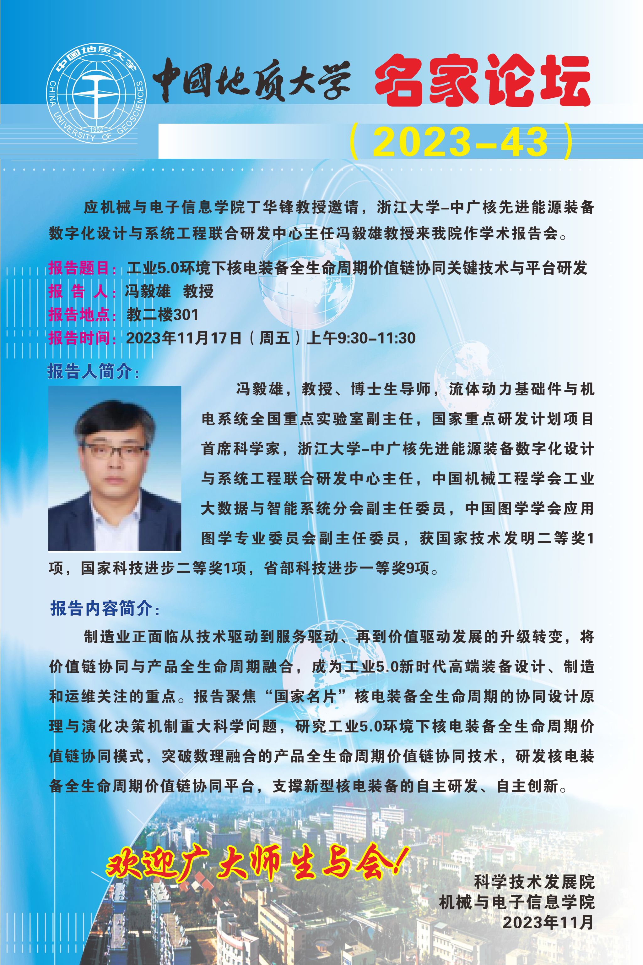 【11月17日】名家论坛(2023-43):浙江大学冯毅雄教授来国产探花 作学术报告会