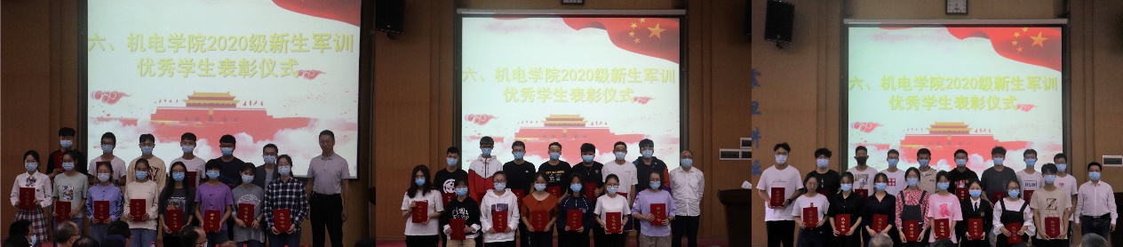 随后,党委副书记于晓舟宣读军训表彰决定,号召全体2020级新同学继续保持军训期间的优良作风,秉承艰苦朴素、求真务实的校训,在今后的学习生活中,不断努力,开拓创新,争取更大的成绩。副院长李波、罗杰和文国军分别为获得表彰的45名同学颁发荣誉证书。