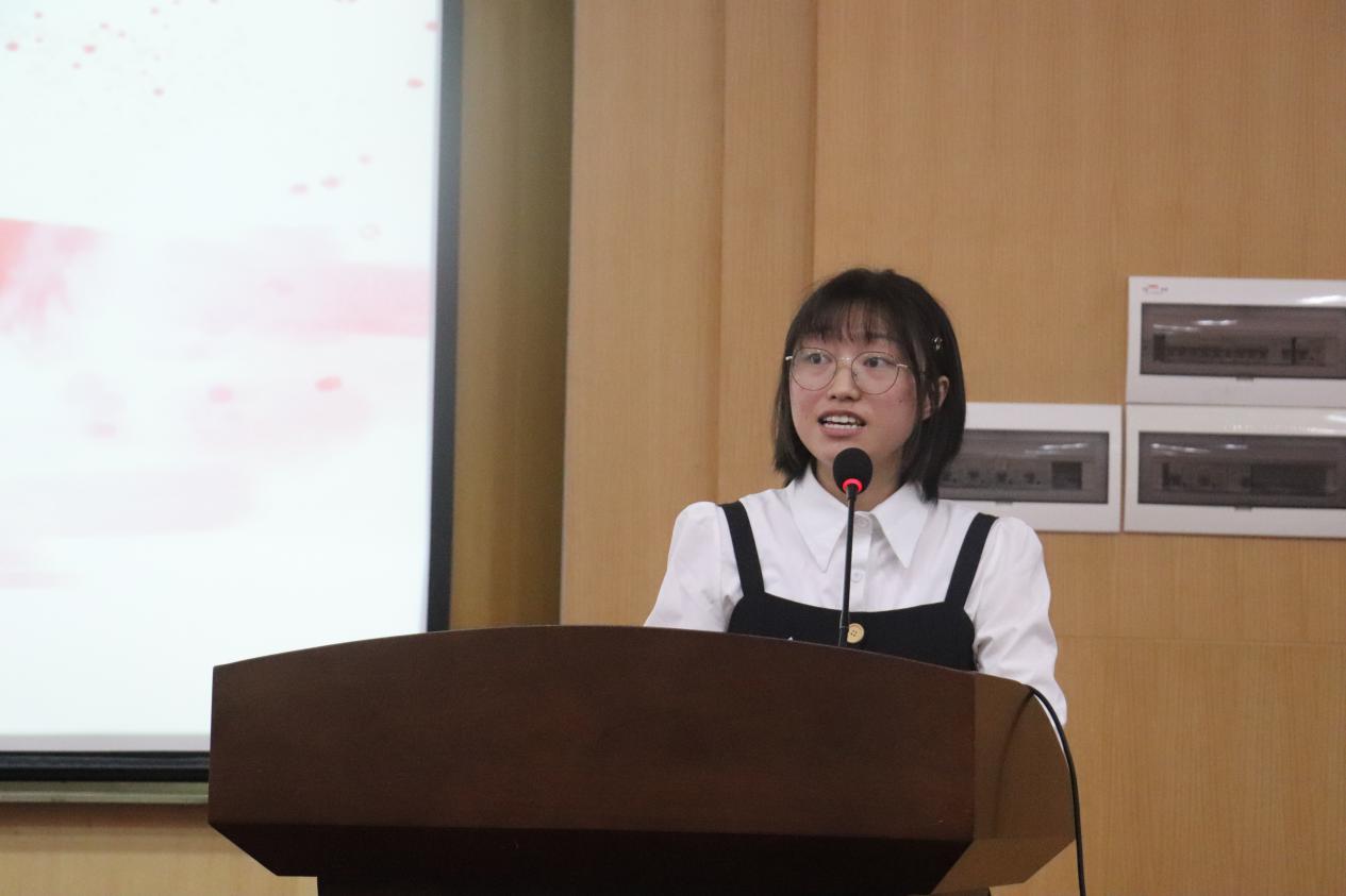 07J205班马雪微代表全体新生发言。她期待在未来四年学习生活中做一朵奔涌的地大浪花,努力成长为理想中的自己。