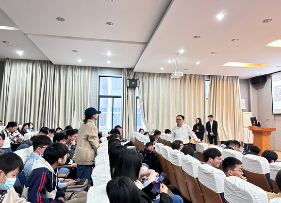 在互动环节中,同学们围绕人才发展培养、专业技能等问题进行了交流。此次专题讲座不仅为高年级同学搭建了与企业沟通交流的平台,也为低年级同学构建职业生涯规划,树立科学合理的就业择业观念提供了有效的指引。