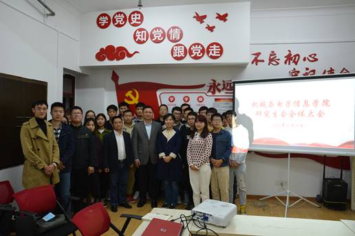 研究生会全体大会并指导工作,学院党委副书记于晓舟、副院长文国军、团委书记杜育及2020届研究生会全体成员参加会议。会议由研会主席团成员叶灵巧主持。