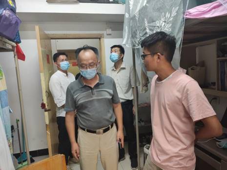 瞿祥华带队前往西区学生宿舍慰问返校本科生,关心同学们在家的学习状况,了解返校过程情况和宿舍防疫安全措施。瞿祥华叮嘱同学们做到不聚集、不串门,提高疫情防控意识,尽快调整状态投入到正常的学习生活中来。