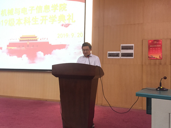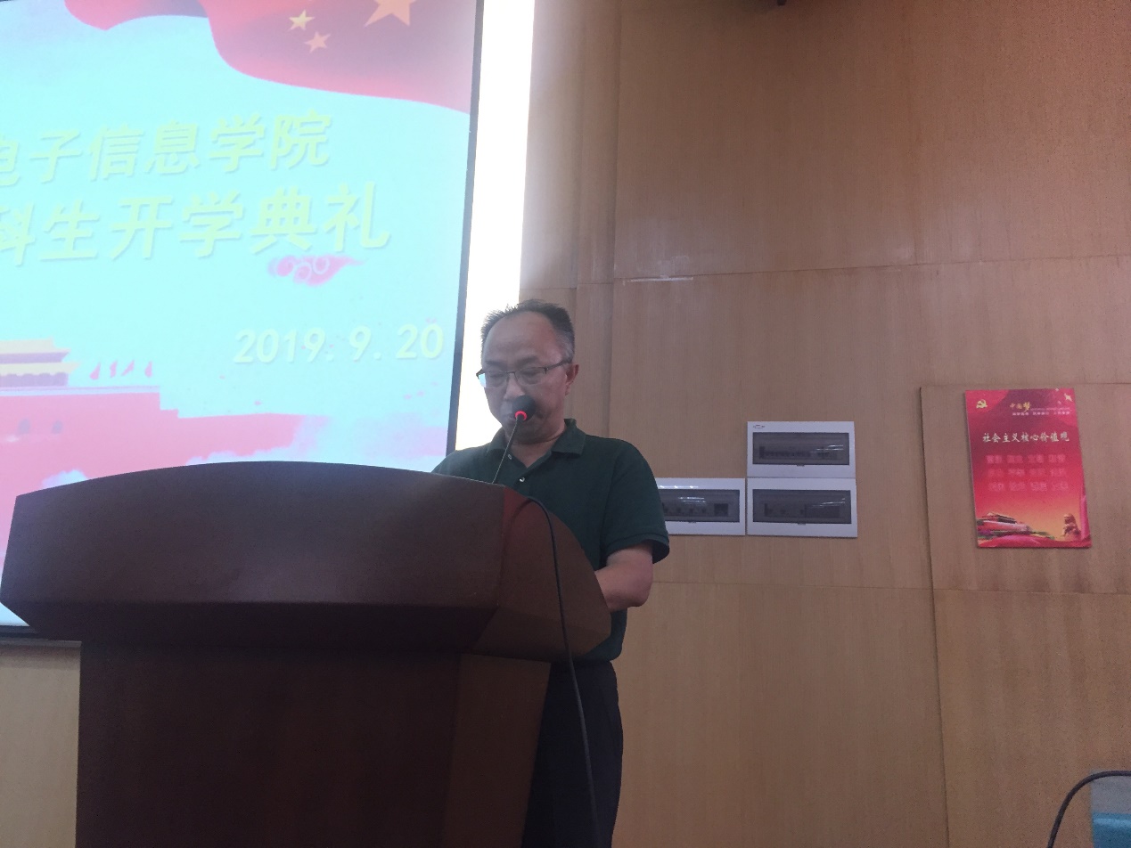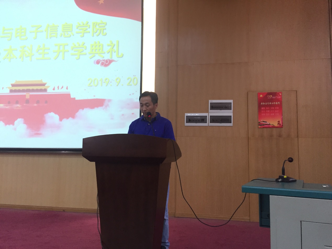 院长丁华锋教授首先发言。他代表学院对2019级新生的到来表示欢迎,期望同学们大学四年能够明确目标,学好理论知识,注重实践动手能力,以积极健康的心态面对大学生活。