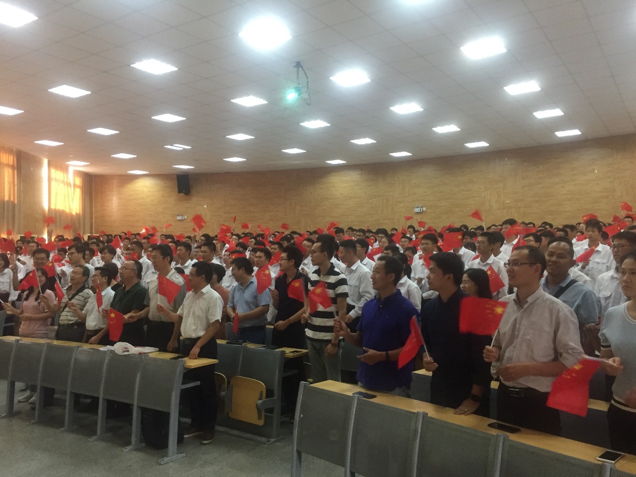 再过十天,我们将喜迎中华人民共和国70周年华诞,典礼最后,与会师生手持五星红旗,齐声高唱《我和我的祖国》,嘹亮的歌声彰显信心和决心,2019级新同学将带着对伟大祖国的美好愿景,以最饱满的激情去迎接新的挑战,塑造新的辉煌!