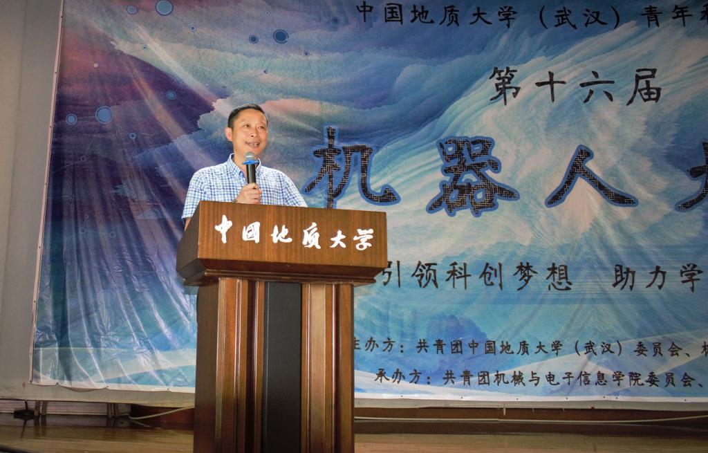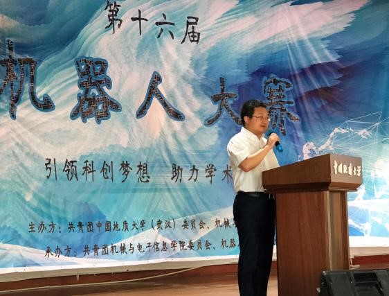 (武汉)第十六届机器人大赛于6月2日14:30在大学生活动中心二楼演播厅正式拉开序幕。学生就业创业指导处处长严嘉、教务处副处长张建和、校团委副书记谭文伦,国产探花