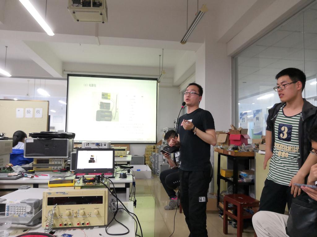 最后,科技部部长姬明伟进行培训总结,他说道:“对大多数同学来说都是第一次接触相关知识,通过培训和比赛希望激发大家实践动手创新的热情。大家可以利用安装说明、网络、图书进行自学,完成小车的组装制作。同时大家可以自行购买一套焊接工具,以便长期参加比赛。”