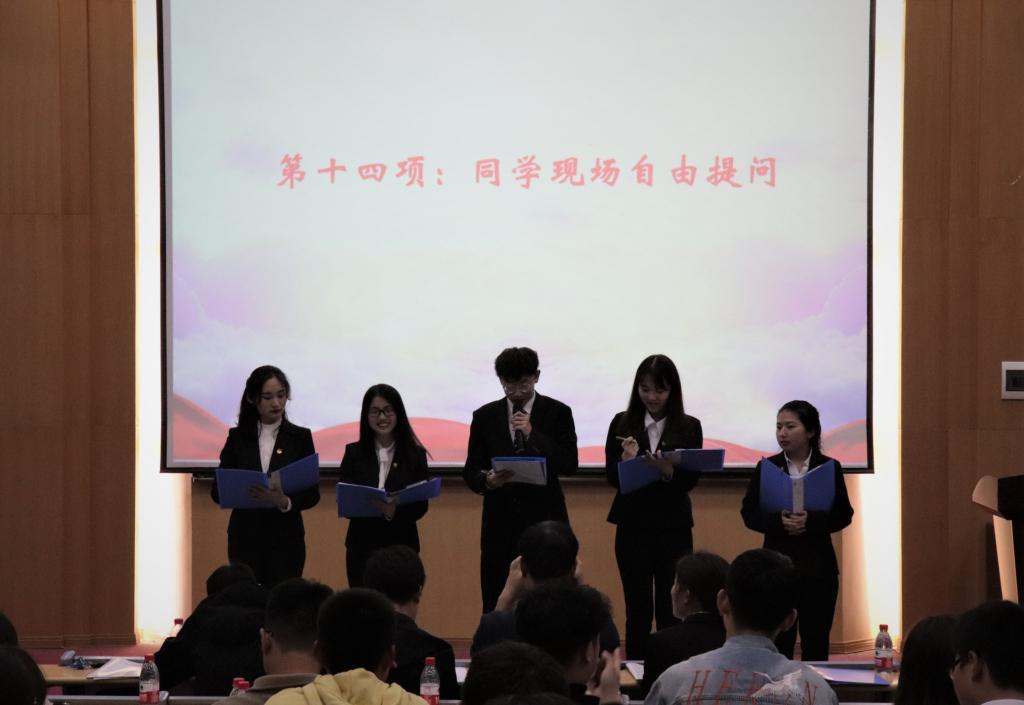 大会第十二项,2019届主席团预选候选人进行答辩。1号候选人闫樨霖,她认为学生会主席团有沟通桥梁的作用,提倡要提前培养有理想有才干的同学,建立好活动反馈机制,建议学术部开展有国产探花 专业特色的活动。2号候选人周子璇,她提倡优化学风建设和内部建设,完善制度、规范动作,要落实考核方案以保证工作质量,广泛收集同学们的意见和建议,开展学术分享会。3号候选人单博阳,他希望可以打造部门品牌活动,并积极去外出调研,学习外校的优点,沉淀自身的文化。4号候选人张依依,她提出通过设立优秀人物专栏,向学生推荐学习对象,营造科技文化氛围,加强人才培养,定期进行副部头脑风暴。5号候选人孙灿,她认为学生会是一棵树,每一部分都是有机的联系,并提出优化学术环境,创办学术电子周刊,扩大情歌大赛等活动的受众面。