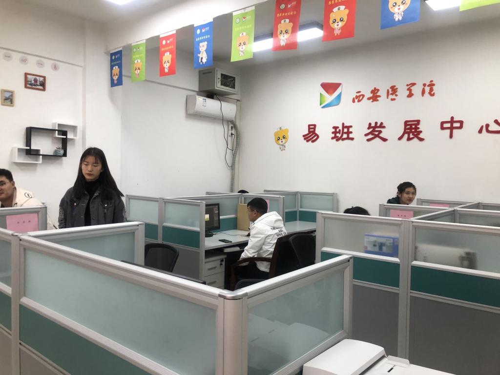 下午,团队分别对西安医学院易班工作中心、长安大学易班工作中心进行调研。西安医学院易班发展中心副主任杨延庆等人带领我们对易班基地进行参观学习。交流会上,杨延庆主任从基本情况、发展理念建设思路、获得成绩、具体做法、年度规划六个方面介绍了西安医学院的易班建设情况。从“采取公司化的管理模式实现学生管理学生,建立健全各项管理制度,打造精品网络社区文化、让易班成为精神乐园,拓展网络服务功能,使易班真正做到为学生服务”讲解了易班的建设思路;从高校排名、获奖情况两方面说明了取得成绩;从探索新大陆,打造特色品牌讲到了未来规划。接着,双方就学生工作、如何发挥易班软件优势等问题进行了深入探讨。