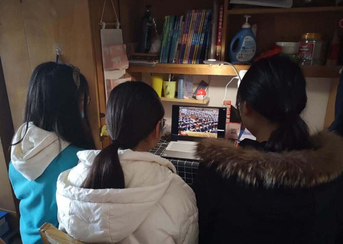 组织师生代表在教二301集中观看了大会盛况,学院团委同时也组织动员了广大团员青年在各学生组织活动室、实验室、学生宿舍等处,通过网络直播和广播等形式,收看收听了大会直播。