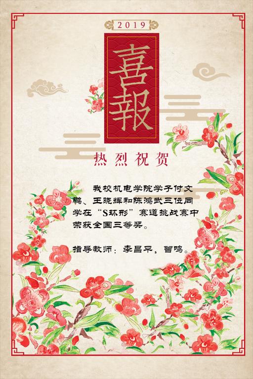 [2019年9月]国产探花 学生获“S环形”赛道挑战赛三等奖